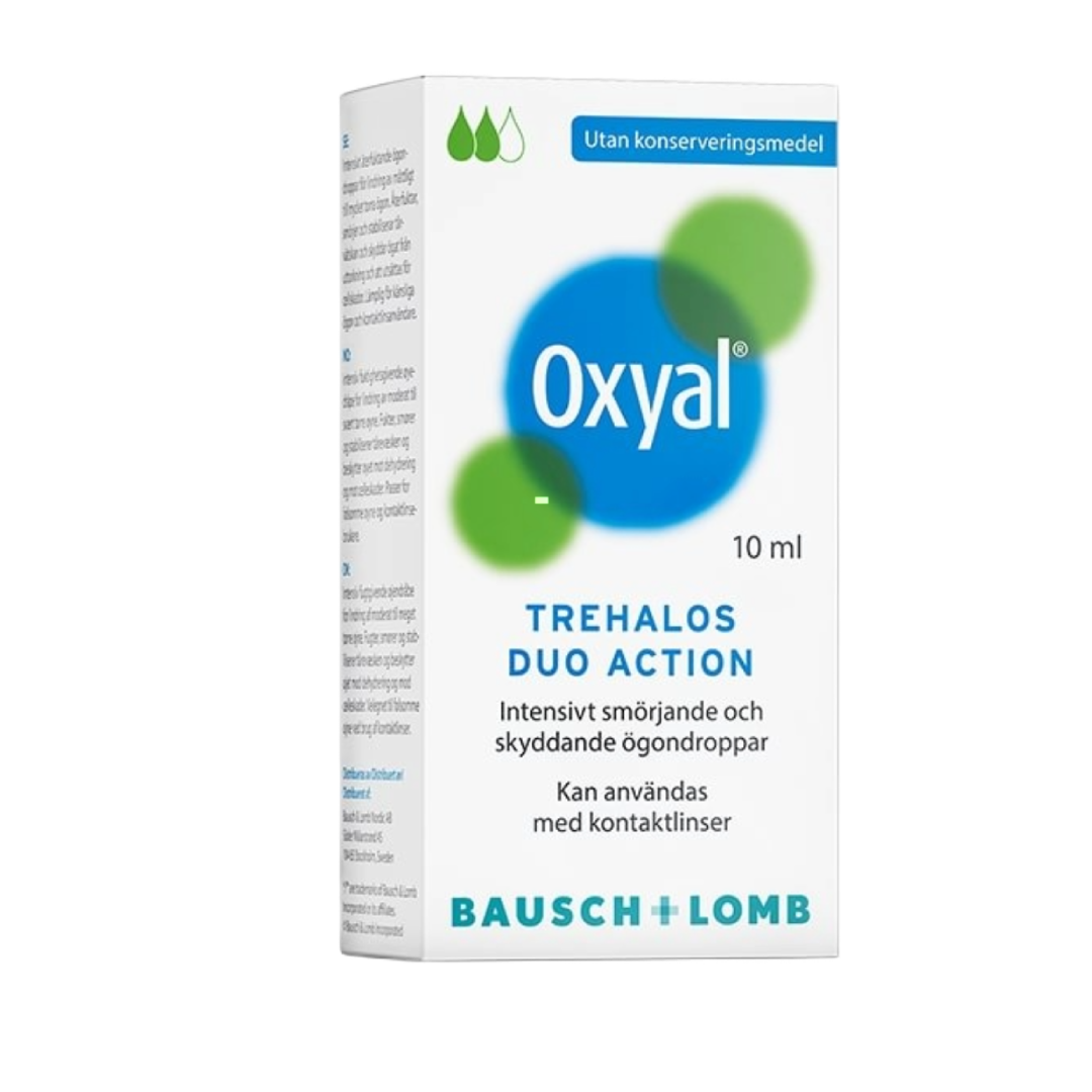 | Produkt | Oxyal Trehalos Duo Action | Systane Ultra (utan konserveringsmedel) | Hylo Dual Intense | Oxyal Trehalos Triple Action |