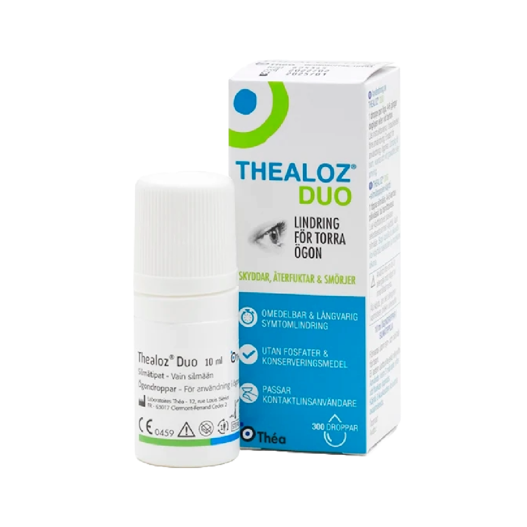Ögondroppar mot torra ögon kan lindra besvär så som torrhet, irritation, skav och sveda i samband med skärmarbete. Vilken typ av droppe som passar bäst beror på vilken typ av torra ögon man har samt grad av besvär. Ögondroppar mot torra ögon går att köpa receptfritt på apotek.